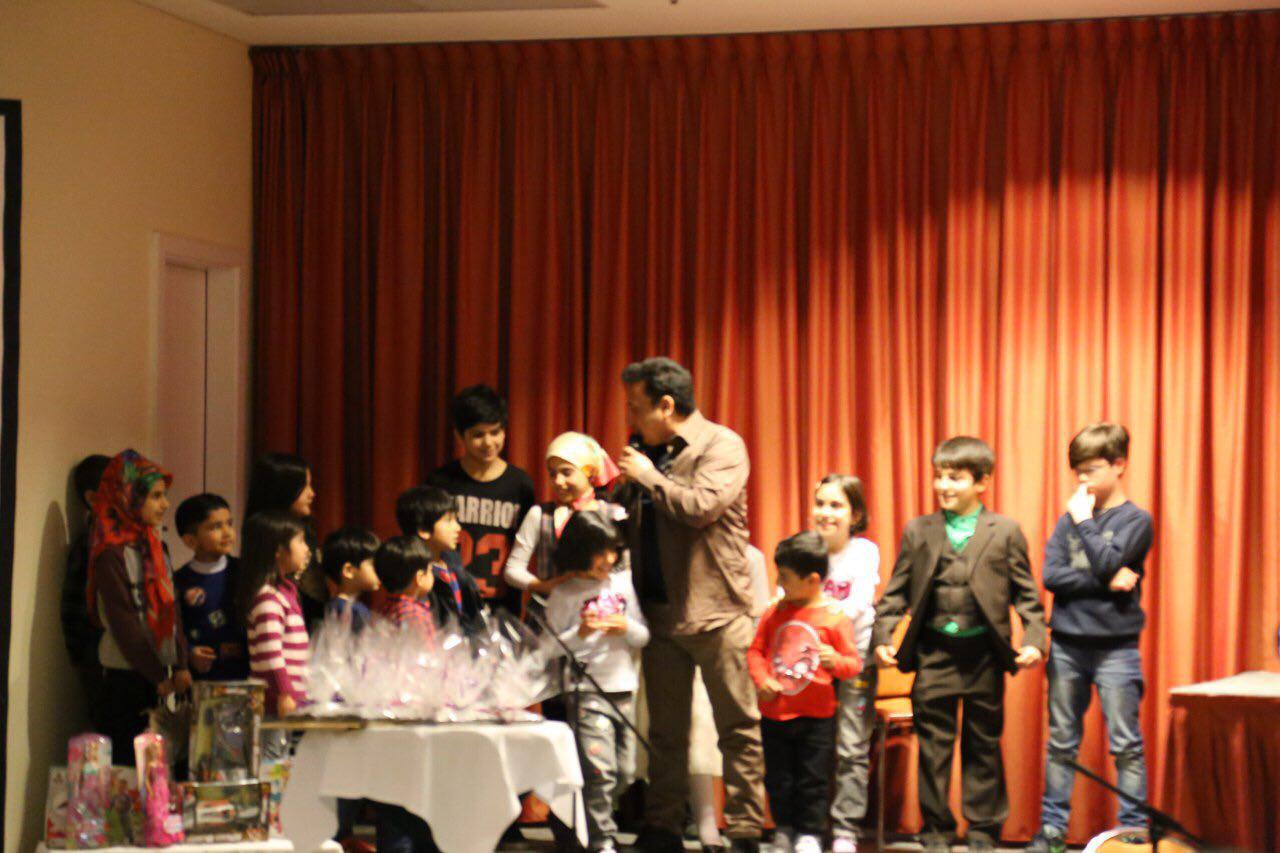 Eingangs stellte ein Film neben der traditionellen Bedeutung des Neujahres und der Neujahrsfeier, ebenfalls ihre heutige Auffassung, unter anderem die der neuen Generation, vor. Die Veranschaulichung der verschiedenen Traditionen, wie das Sofre-ye Haftsin und der zugehörigen Tage, wie Chaharshanbe Souri oder Sizdebedar, schenkte den Gästen, unabhängig ihrer Herkunft, ein detailliertes Verständnis für einen wichtigen Teil der iranischen Kultur. Somit wurden den Gästen sowohl die Traditionen, als auch ihre Hintergründe vermittelt. Nach diesem informativen Film übernahm die Gruppe Raga die Unterhaltung. Während Kinder an verschiedenen Spielen teilnahmen und Geschenke erhielten, wurden sie von ihren Eltern und den restlichen Gästen angefeuert und bejubelt. Zuzüglich der Unterhaltung der Kinder, wurde das Nouruz-Ritual Jüngere zu beschenken, vollbracht. Infolgedessen verschwand ein Gruppenmitglied hinter dem Puppentheater und das Puppenspiel mit dem Titel „Die Heirat von Mobarak“ begann. Während im Puppentheater die rotgekleidete Figur Mobarak auftauchte, setzten sich zwei weitere Gruppenmitglieder davor auf den Boden begannen sich mit Mobarak zu unterhalten. Neben der lustigen und schwer verständlichen Redensart der Figur, sorgte auch die Handlung des Puppenspiels für Gelächter im Publikum. Die Unterhaltung zwischen Mobarak und den Gruppenmitgliedern berief sich darauf, dass die Gruppenmitglieder wiederholten, was Mobarak auf seiner schwer verständlichen Redensart sagte und dies dadurch dem Publikum vermittelten. Die Auftritte verschiedener Puppen mit traditioneller Kleidung waren ein sehr schöner Anblick für das Publikum. Insbesondere Gäste nicht-iranischer Herkunft fanden großes Gefallen am iranischen Puppenspiel, dem sogenannten Kheyme Shabbazi. Für das persischsprachige Publikum bot das Puppentheater neben vielen Wortspielen auch viele Redewendungen, für das nicht-persischsprachige Publikum hingegen eine lustige Unterhaltung, die zwischen den Figuren und den Gruppenmitgliedern stattfand.